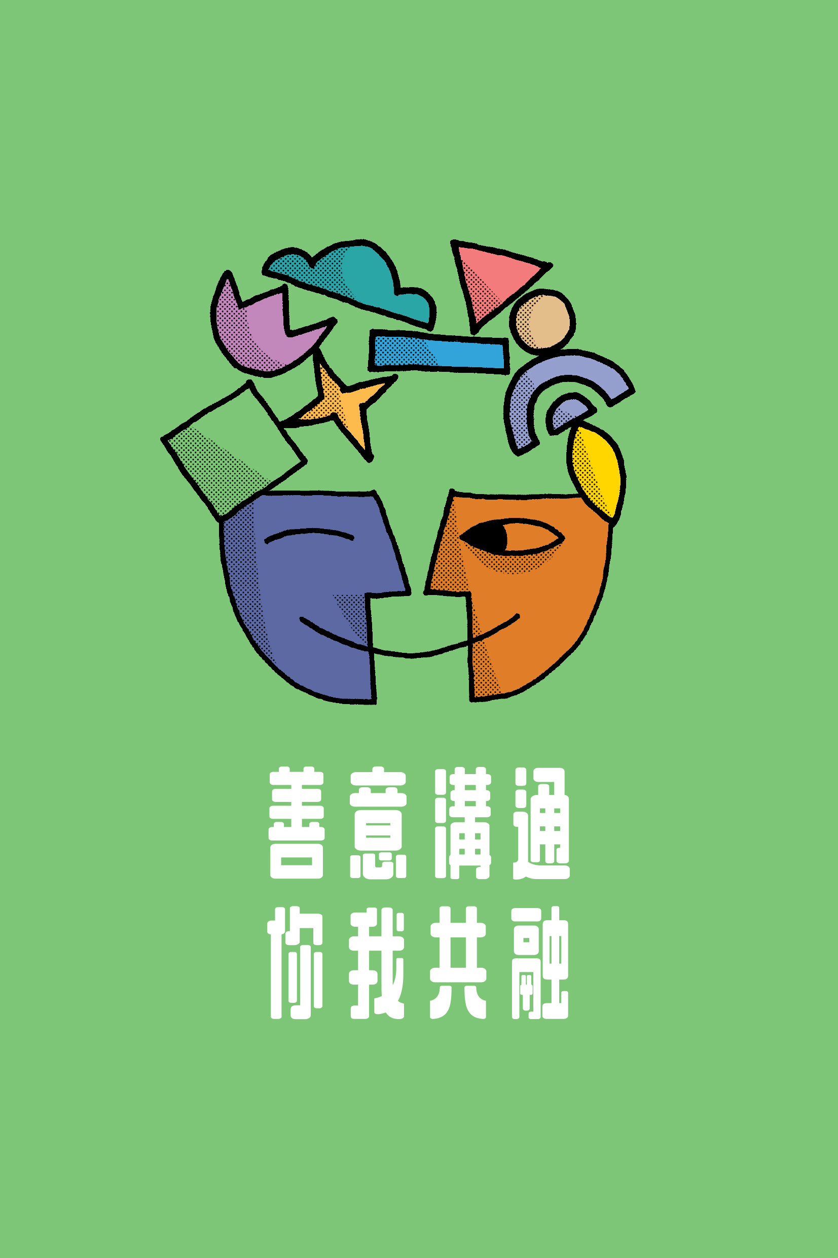 In addition, to enhance the concept of “We’re in Harmony”, a big line drawing heart shaped space is designed which delineates a friendly and inclusive room, it is be of good use to a set of dormitory posters and programme leaflet.